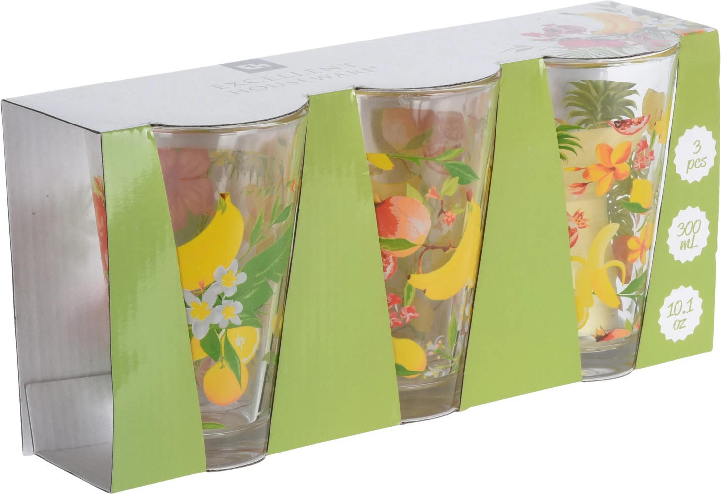 Set van 3 vrolijke limonade glazen, inhoud 30cl.